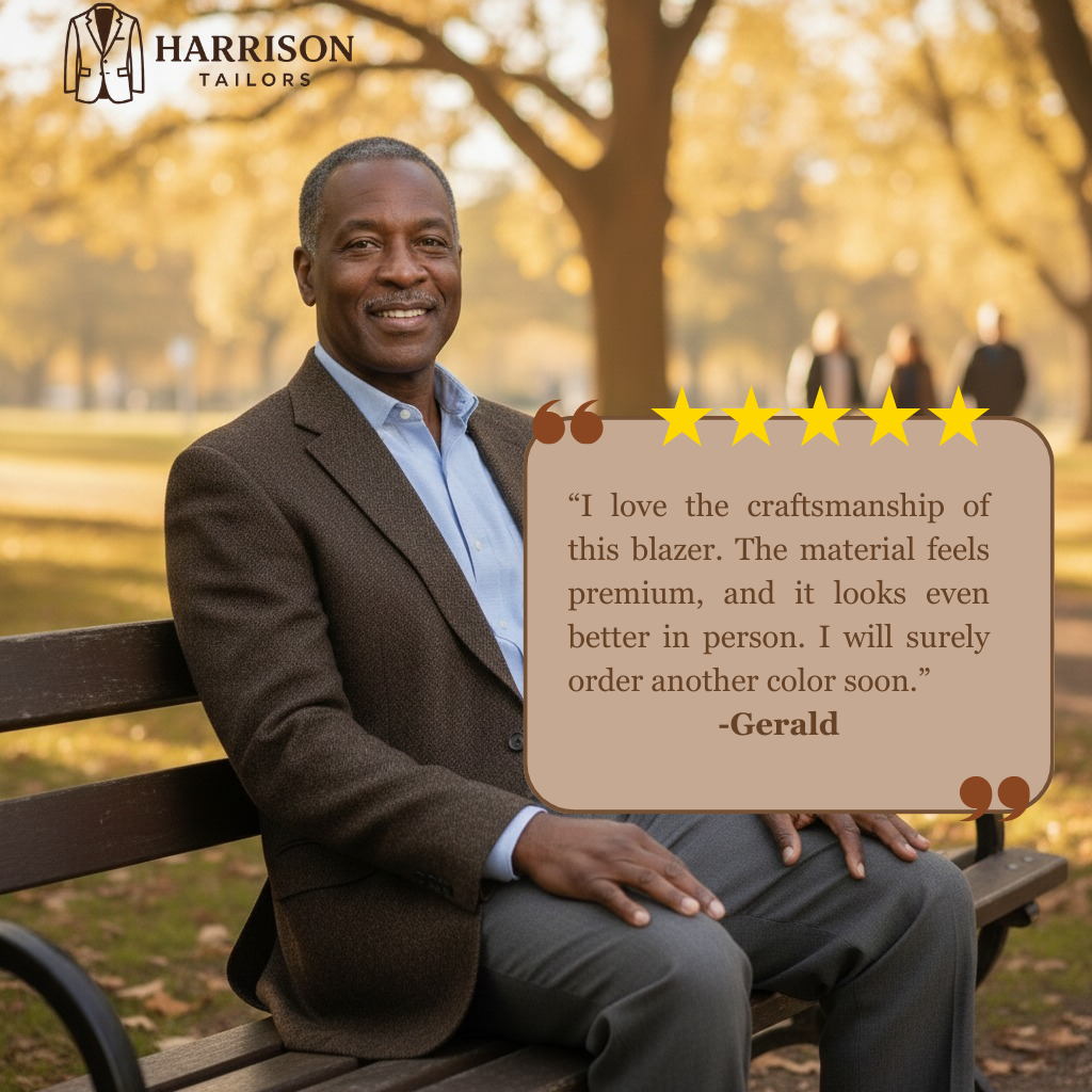 The blazer I ordered from Harrison Tailors fits like it was made just for me. The shoulders, length, and cut are absolutely perfect. I’ve never had a blazer feel this comfortable yet look so sharp!